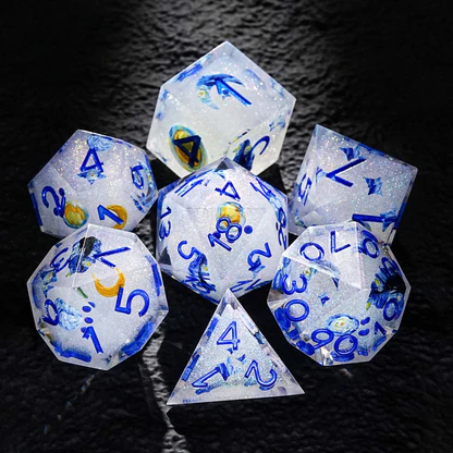 [Design Of The Dice]: The dice uses Van Gogh's paintings as the main design element. The intricate details and Blue hues make it a must-have for any discerning Dungeon & Dragons enthusiast.