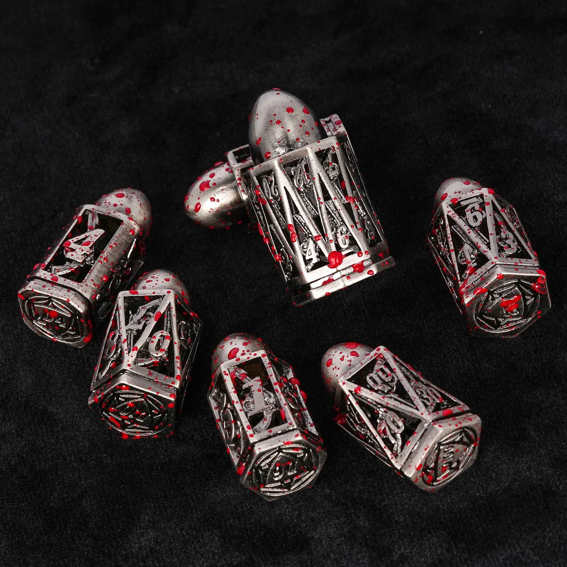 DND 7 pieces. dice Package: Includes D4, D6, D8, D10, D12, D20 and D%. If you like exciting gaming experiences and are looking for a different style, then this Bullet Storm Metal Dice set (Blood) is definitely for you. Come and own it and unleash your wildness in the game world.