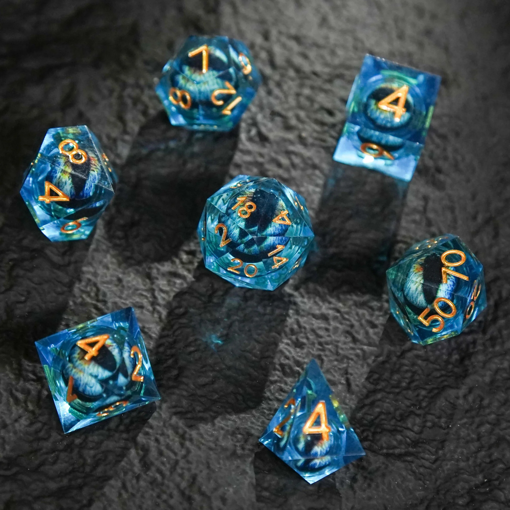 [Design Of The Dice]:The dice uses dragon's eye as the main element, sculpted using exquisite craftsmanship, adds a mysterious atmosphere to role playing game, which is very novel and cool.