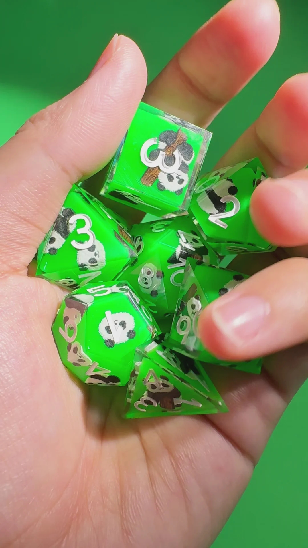 Product description: [DND 7-pcs Dice Set]: Including D4, D6, D8, D10, D12, D20 and D%. [Material]: These dice are made of resin, strong, durable, odorless, non-toxic and safe. [Design Of The Dice]: The dice uses Panda as the main design element. The intricate details and Green hues make it a must-have for any discerning Dungeon & Dragons enthusiast. [Craftsmanship]: Each dice is hand polished, with sharp edges and corners. [Easy Reading Dice]: Very conspicuous numbers in easy reading font. [Packaging]: Gorgeous case with foam liner decorated and onvenient storage bag. Perfect for display and storage. [Multi-purpose]: The dice are perfect for RPGs such as Dungeons and Dragons, Shadowrun, Pathfinder, Savage World, Warhammer, Yahtzee, and many other RPG and card games. [After-sale Guarantee]: 30-day money-back guarantee, if the product is defective or incomplete, please contact us and we will provide a solution immediately. Happy shopping~