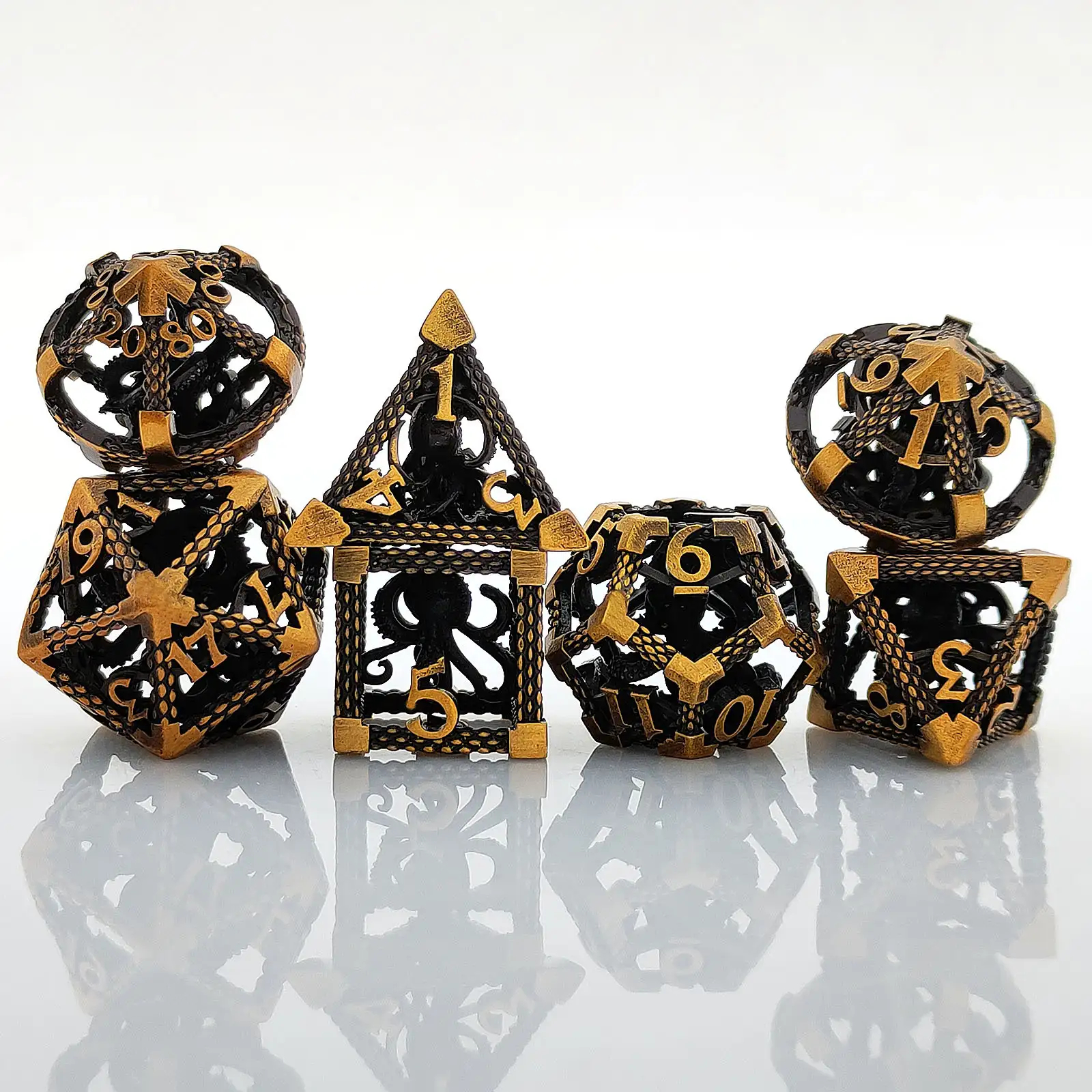 [DND 7Pcs Dice Set]: One set Metal Hollow dice total 7 pcs, including D4, D6, D8, D10, D12, D20 and D%. These 7-piece dice sets are hand-made by a jeweler who designs specialized gaming products. They are stunning. They are created with exceptional quality and are the perfect gift for any DND player, DM, or enthusiast of other board or table games.