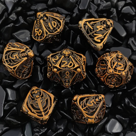 - [DND 7Pcs Dice Set]: One set Metal Hollow dice total 7 pcs, including D4, D6, D8, D10, D12, D20 and D%. These 7-piece dice sets are hand-made by a jeweler who designs specialized gaming products. They are stunning. They are created with exceptional quality and are the perfect gift for any DND player, DM, or enthusiast of other board or table games.