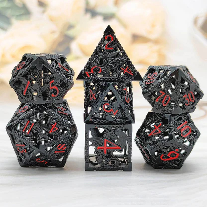 [Design Of The Dice]: The dice use dragon as the main element, sculpted using exquisite hollow craftsmanship, adds a mysterious atmosphere to role playing game, which is very novel and cool.