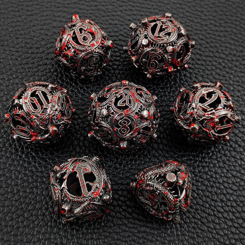 [Design of The Dice]: This hollow metal dice set,have a rounded and exquisite inlaid dragon design. with novel element design, very conspicuous numbers in easy reading font.The pattern is exquisitely carved, with first-class feel,appearance,and good rolling balance, bringing you a different experience, a gift worthy of collection.