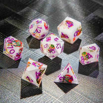 【DND 7-pcs Dice Set】 Including D4, D6, D8, D10, D12, D20 and D%.